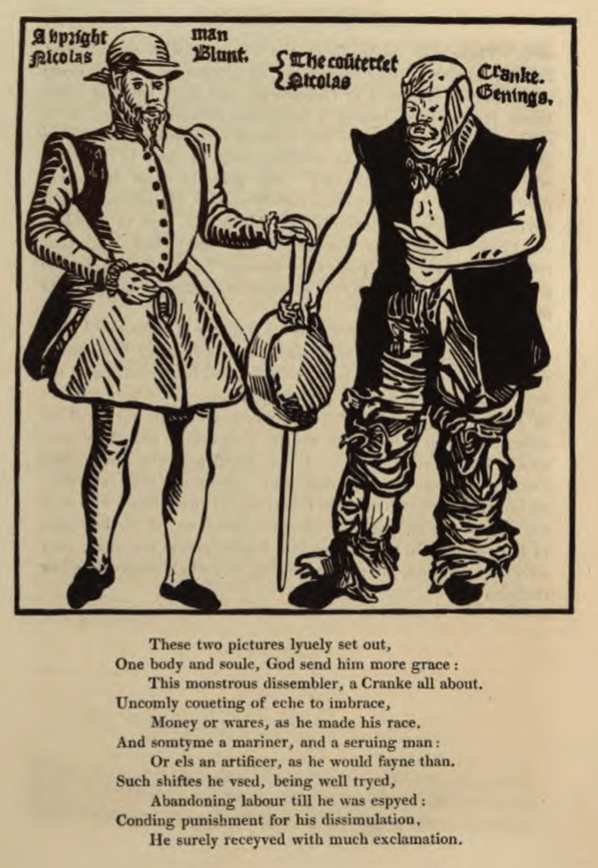 Illustration: A freshe water mariner or whipiacke. From “A caveat or warning for common cursetors, vulgarly called vagabonds” (Harman 1567)
