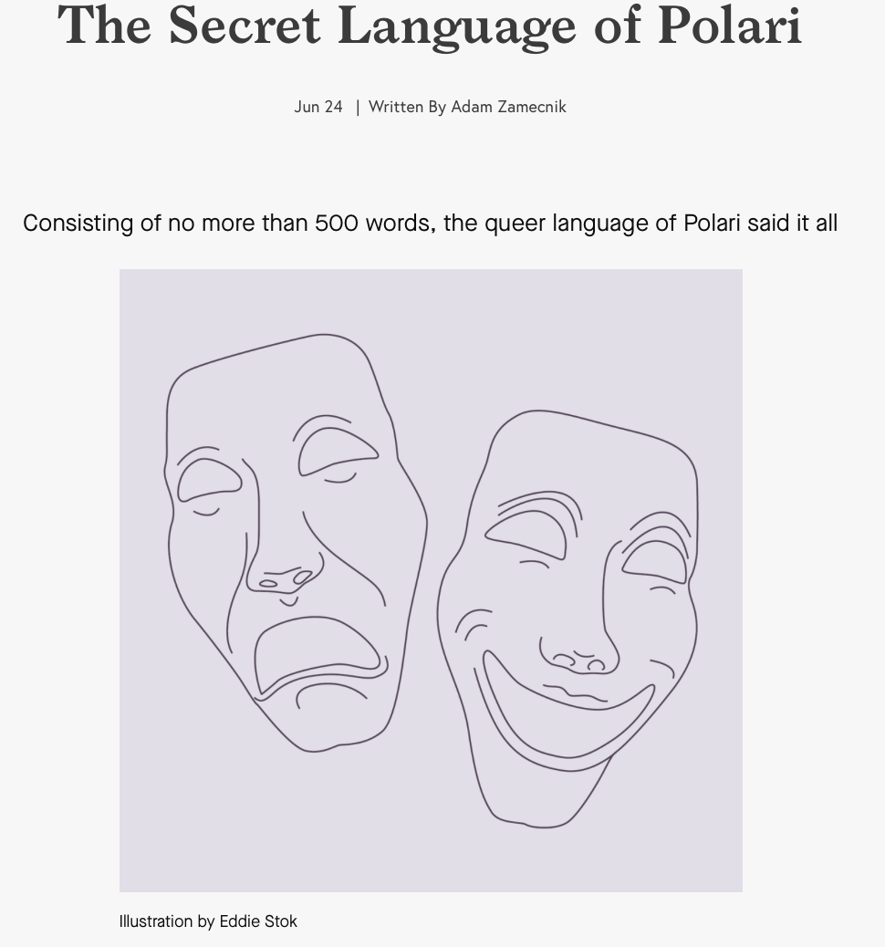 London Film School: “Polari – A short documentary about the lost language of gay men” 2018 https://youtu.be/uBa6f2E9IGE