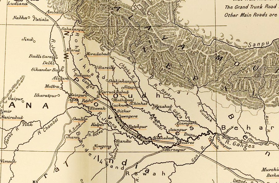 Robert was initially stationed in Awadh (also spelt Oudh), which is now the north eastern part of the state of Uttar Pradesh. It is to the east of Delhi where the Mughal Emperor still lived in the Red Fort. With the decline of the the central Mughal state, governance of Awadh was under the semi-autonomous Nawabs, whose capital was Lucknow. After the 1801 Treaty of Lucknow, Awadh had essentially become a client state of the British. In 1856, the British Governor General Lord Dalhousie annexed Awadh under the Doctrine of Lapse, as Dalhousie decreed that the Nawab, Wajid Ali Shah, was incapable of managing the state. Awadh was then incorporated into Company territory. This wasn’t the only reason for the Uprising of 1857, but it was part of it.