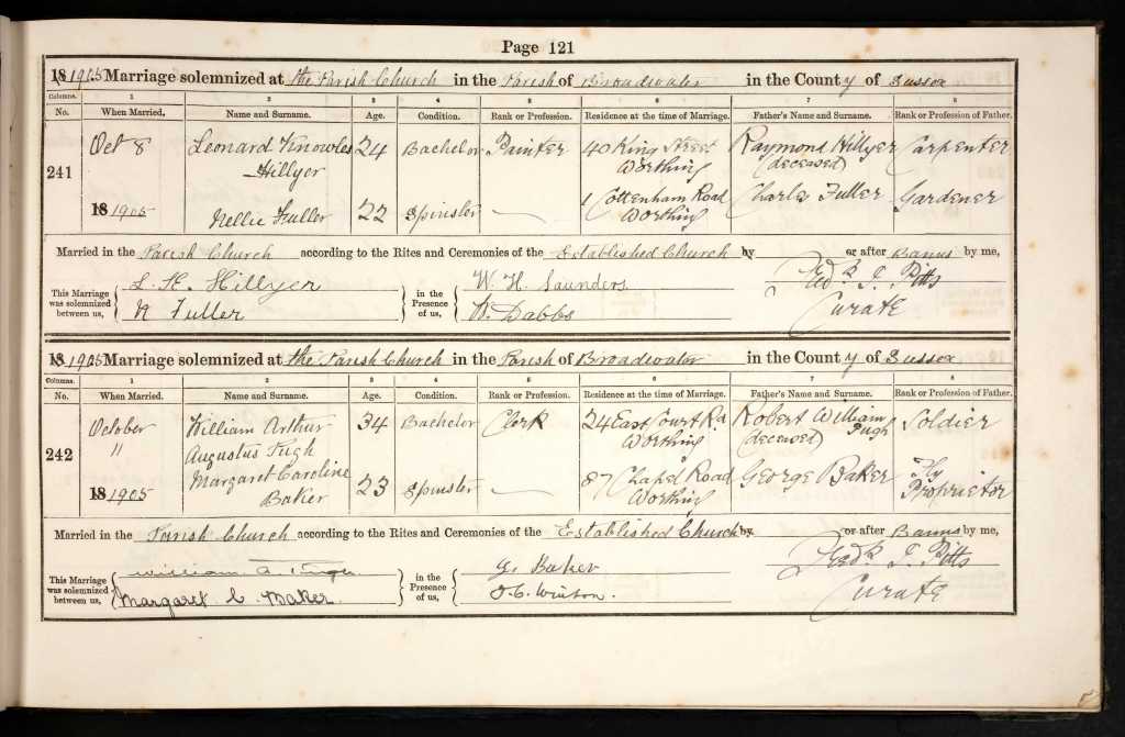 William Arthur Augustus Pugh married Margaret Caroline Baker on 11th October 1905 in Broadwater Church, Worthing.