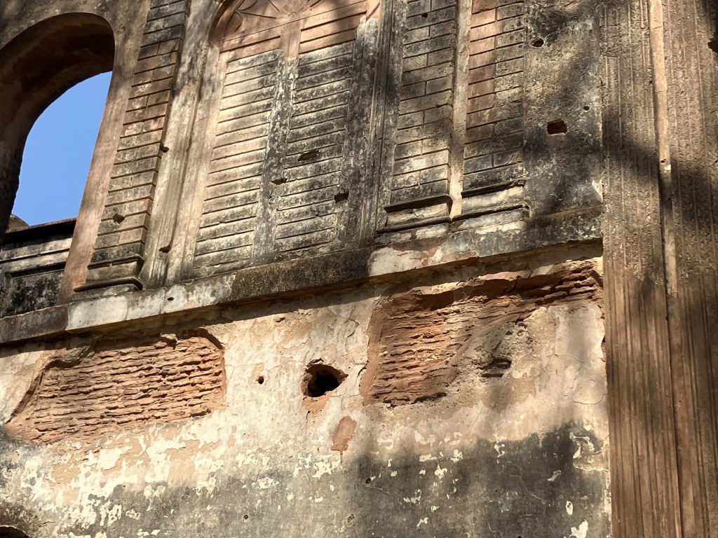 Damage to the buildings of the Lucknow Residency from the time of the Uprising, still apparent in 2024.