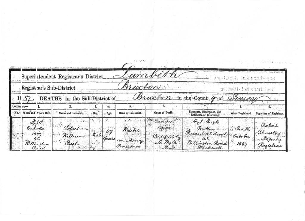 In the last quarter of 1887, Robert’s death was registered in Lambeth. He was aged 49.