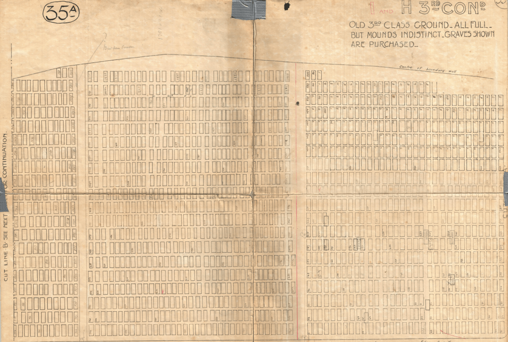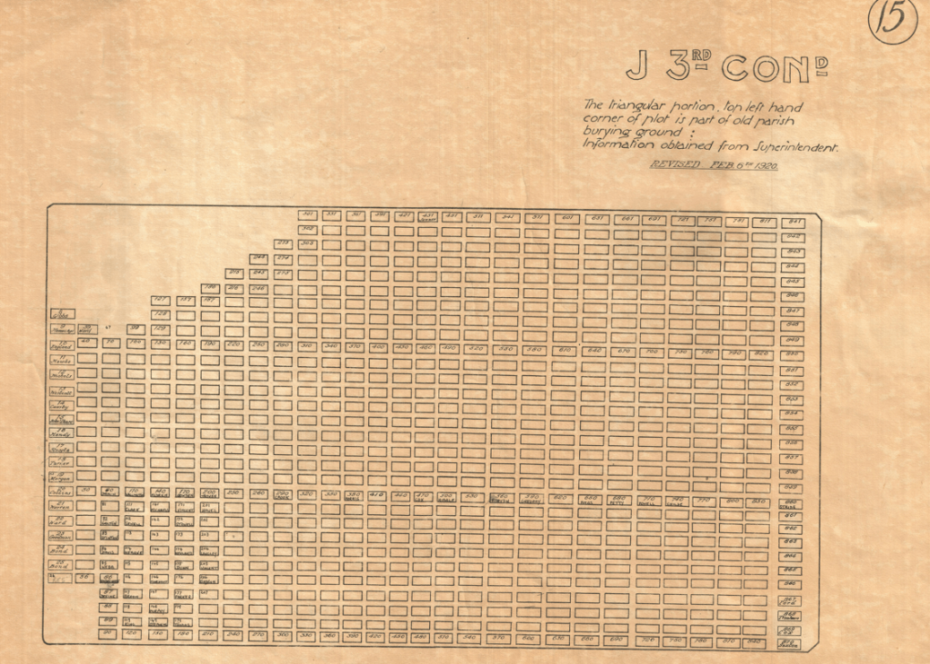Robert’s grave reference is J3/659, which places him in this area of the graveyard. The exact spot hasn’t been found yet, but is indicated on the plan shown below, and is approximately at the front of this photograph.