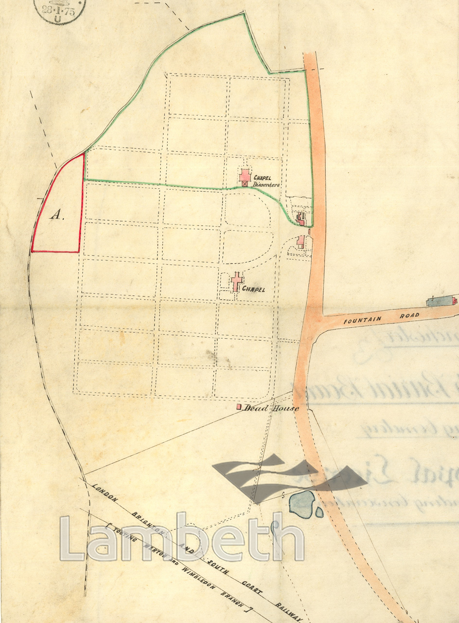 She was buried in Lambeth Cemetery on 20th November 1916. Her grave reference is H3/437 (see cemetery plan above), which places her in the most overgrown part of the cemetery, shown below. The exact spot has not yet been found, but is indicated on the plan shown below, and is probably at the bottom, just to the right of centre.
